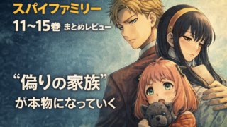 スパイファミリー11〜15巻は、偽りの家族が少しずつ本物になっていく転換点。ロイド・ヨル・アーニャそれぞれの感情の変化と見どころをまとめてレビュー。