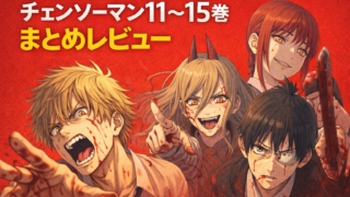チェンソーマン11〜15巻をまとめてレビュー。狂気が日常へと侵食し、世界の価値観が裏返る中盤クライマックスを整理。物語が決定的に変わる5巻を深掘り解説。